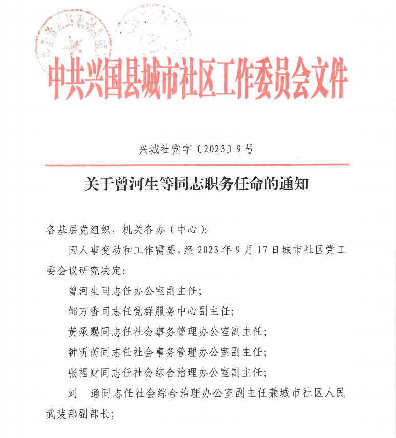 關(guān)于曾河生等同志職務(wù)任命的通知