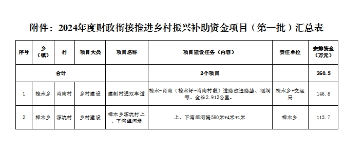樟木鄉(xiāng)2024年度財政銜接推進(jìn)鄉(xiāng)村振興補(bǔ)助資金項目(第一批)匯總