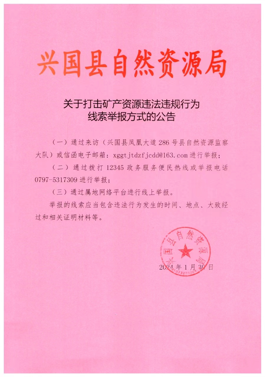 關于打擊礦產資源違法違規行為線索舉報方式的公告