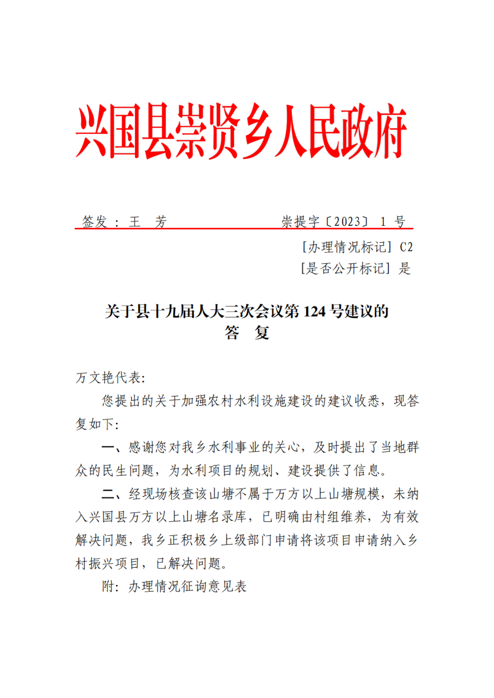 關于加強農村水利設施建設建議的答復