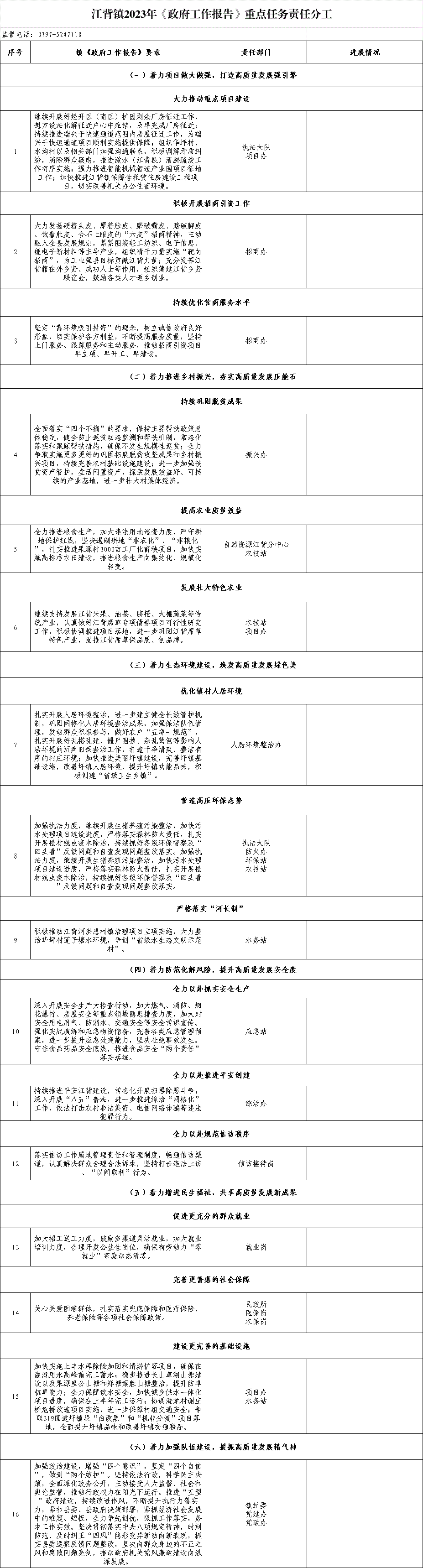 江背鎮2023年《政府工作報告》重點任務責任分工