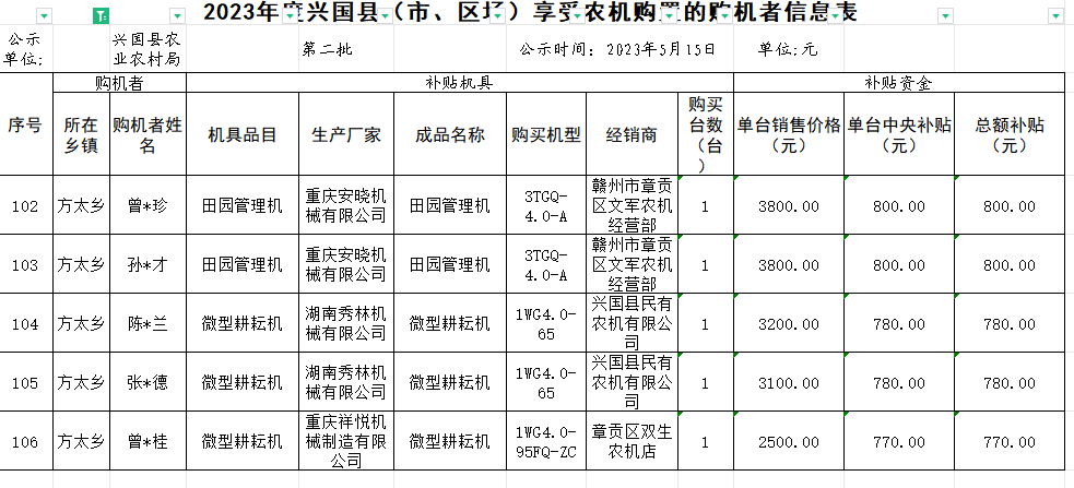 【涉農補貼】方太鄉2023年第二批農機購置補貼