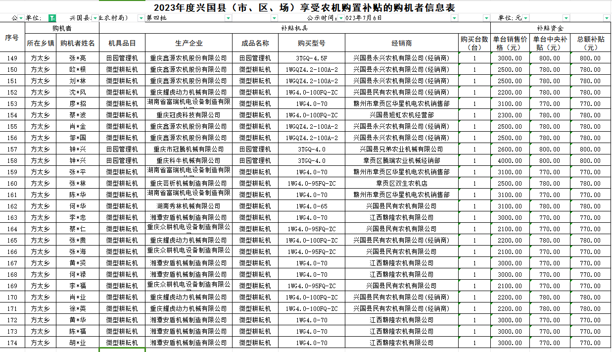 【涉農(nóng)補貼】方太鄉(xiāng)2023年第四批農(nóng)機購置補貼