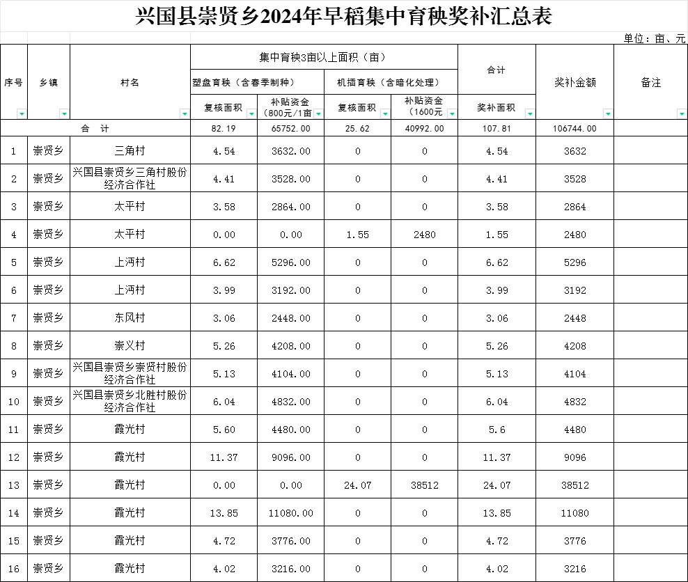 興國縣崇賢鄉(xiāng)2024年早稻集中育秧獎補