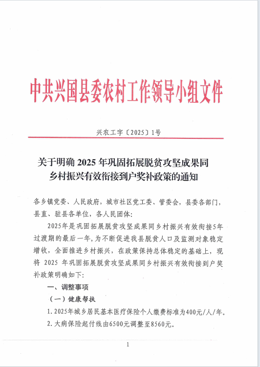 關于明確 2025 年鞏固拓展脫貧攻堅成果同鄉村振興有效銜接到戶獎補政策的通知