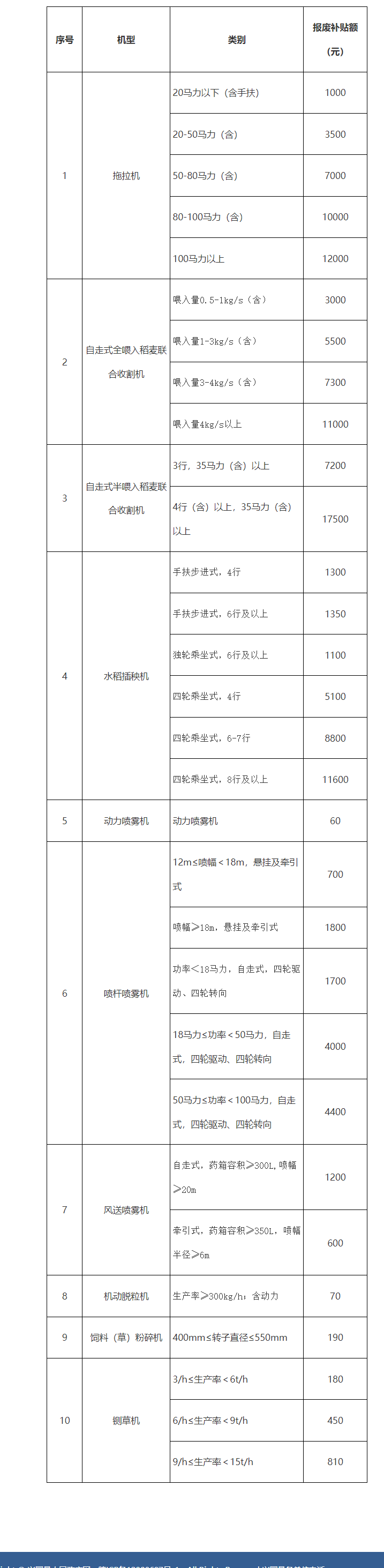 二、補貼機具種類和報廢條件