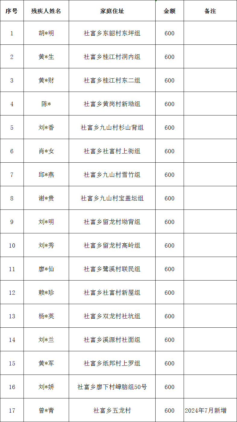 社富鄉(xiāng)2026年1月建檔立卡貧困重度失能殘疾人居家照護(hù)對象撥款名單