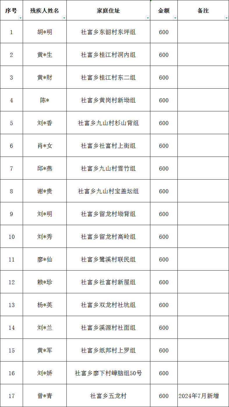 社富鄉2026年2月建檔立卡貧困重度失能殘疾人居家照護對象撥款名單