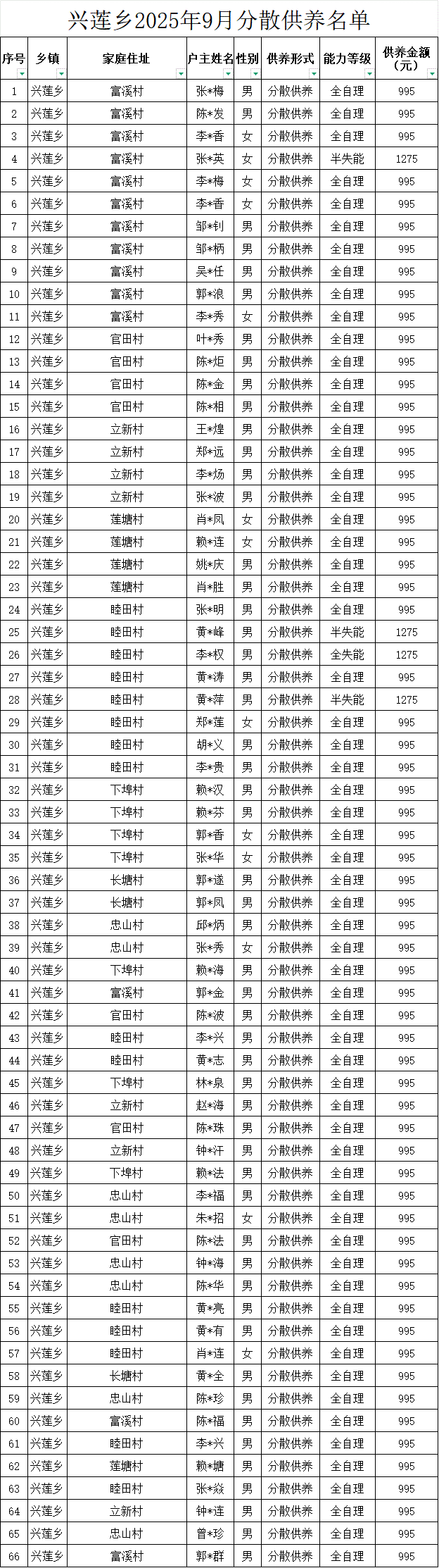 【社會救助】興蓮鄉2025年9月分散供養名單