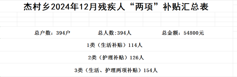 杰村鄉(xiāng)2024年12月殘疾人“兩項(xiàng)”補(bǔ)貼匯總表