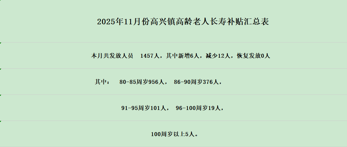 【高齡補貼】2025年11月份高興鎮高齡老人長壽補貼匯總表