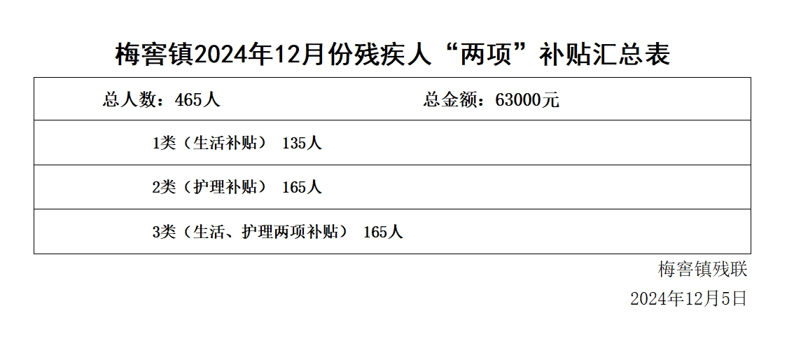 【殘疾人“兩項”補貼】梅窖鎮2024年12月份殘疾人“兩項”補貼情況