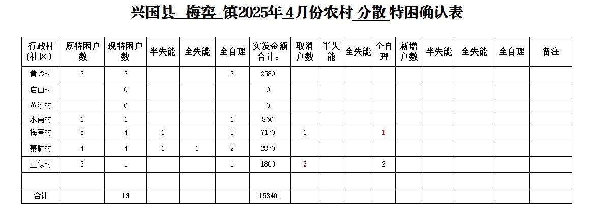 【特困供養】梅窖鎮2025年4月份農村分散特困發放匯總表