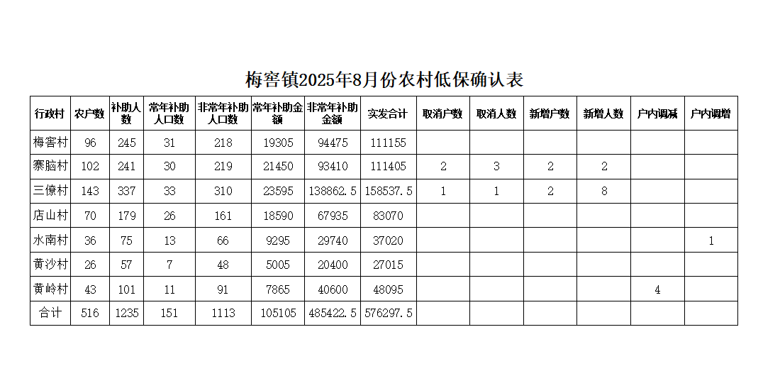 【低保補貼】梅窖鎮(zhèn)2025年8月份農村低保發(fā)放匯總表
