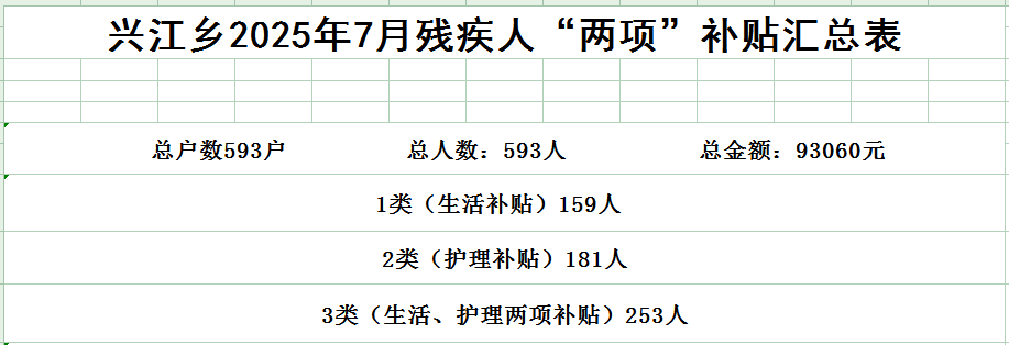 【社會救助】興江鄉2025年7月份殘疾人兩項補貼公示