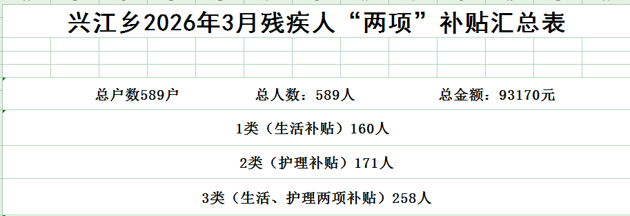 【社會救助】興江鄉(xiāng)2026年3月份殘疾人兩項補貼公示