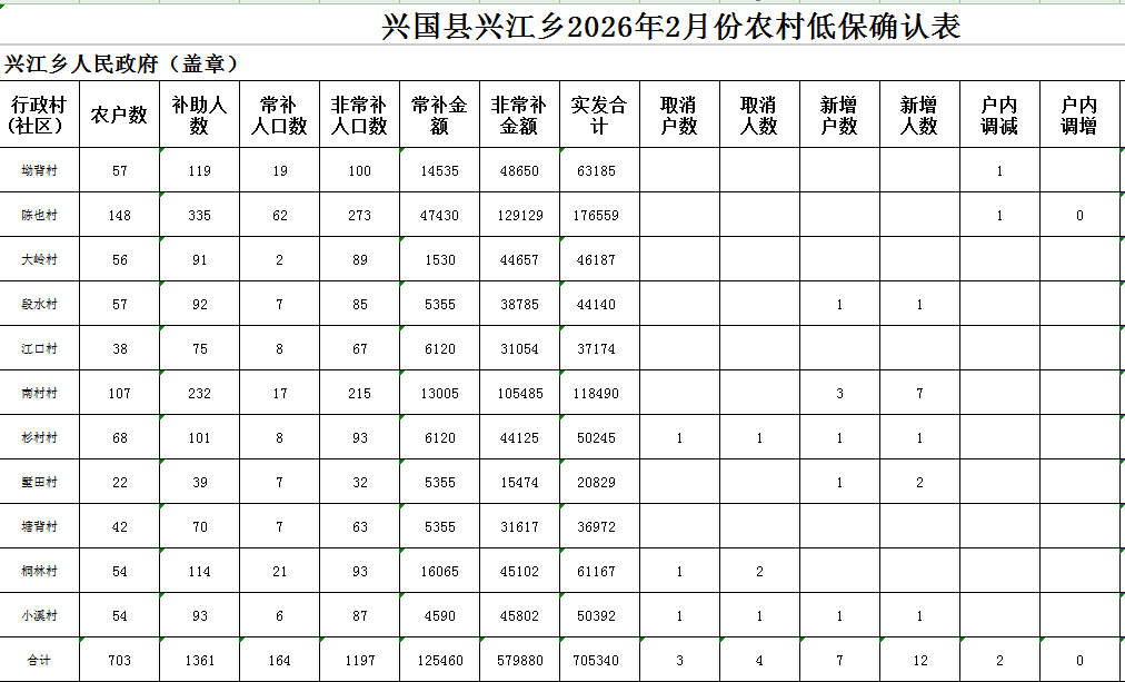 【社會(huì)救助】興江鄉(xiāng)2026年2月份農(nóng)村低保公示