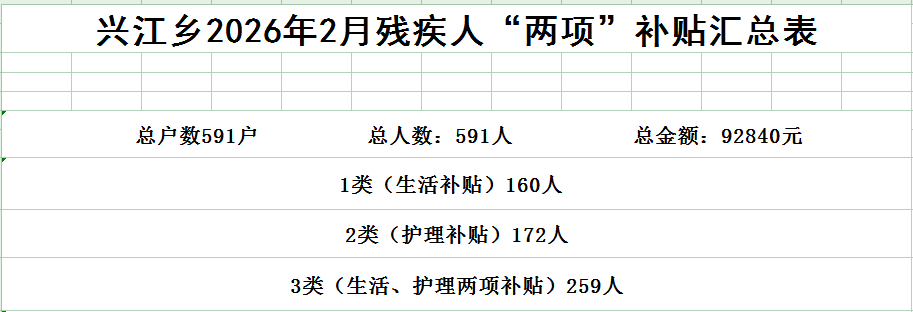 【社會救助】興江鄉2026年2月份殘疾人兩項補貼公示