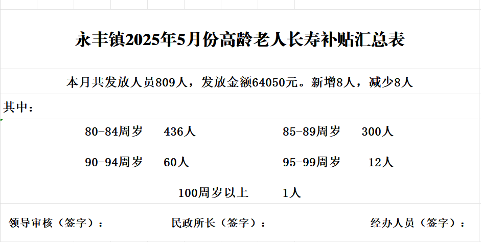 永豐鎮(zhèn)2025年5月份高齡老人長(zhǎng)壽補(bǔ)貼匯總表