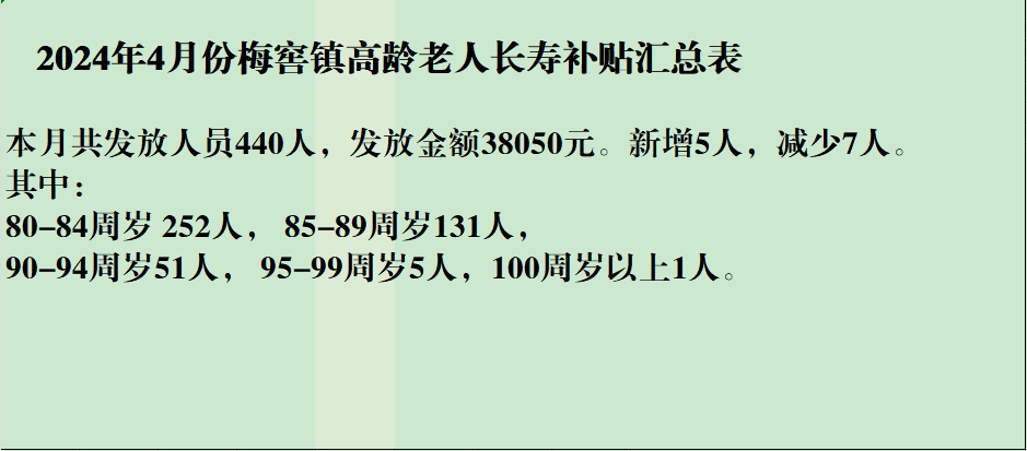 【養(yǎng)老服務(wù)】梅窖鎮(zhèn)2024年4月份高齡補貼匯總表