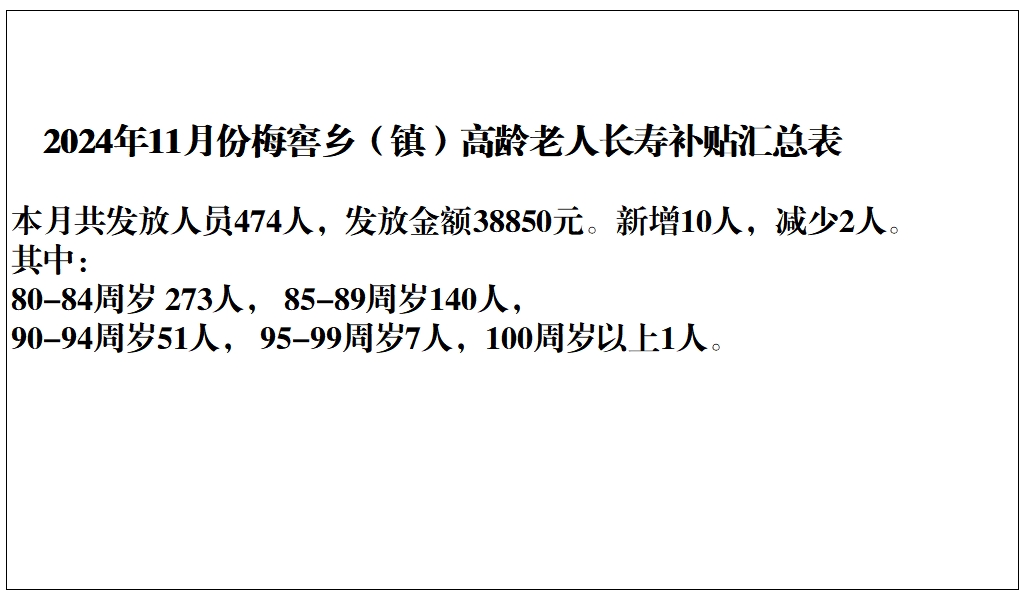 【養老服務】梅窖鎮2024年11月份高齡補貼匯總表