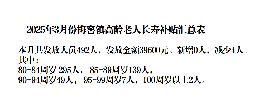 【養老服務】梅窖鎮2025年3月份高齡補貼匯總表