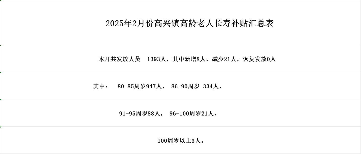 【高齡補貼】2025年2月份高興鎮高齡老人長壽補貼匯總表