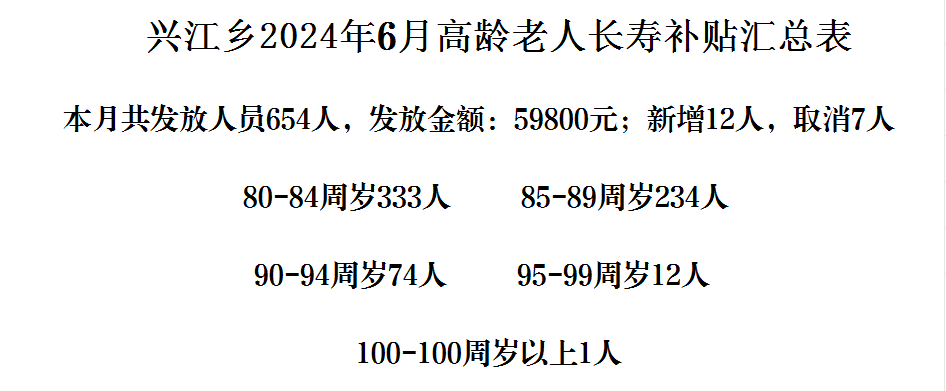 【養老服務】興江鄉2024年6月份高齡老人長壽補貼發放公示