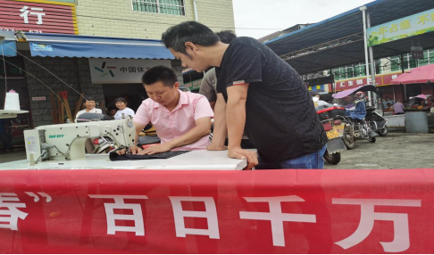 活動(dòng)現(xiàn)場(chǎng)一片繁忙,群眾爭(zhēng)先恐后的瀏覽、咨詢著感興趣的崗位;用工企業(yè)招聘代表仔細(xì)地考量著應(yīng)聘勞動(dòng)力的現(xiàn)場(chǎng)試崗情況;東村鄉(xiāng)工作人員忙碌著為求職人員登記信息、推薦崗位,并手把手教會(huì)群眾使用興國(guó)縣崗位信息“小程序”去隨時(shí)隨地瀏覽縣內(nèi)崗位信息。