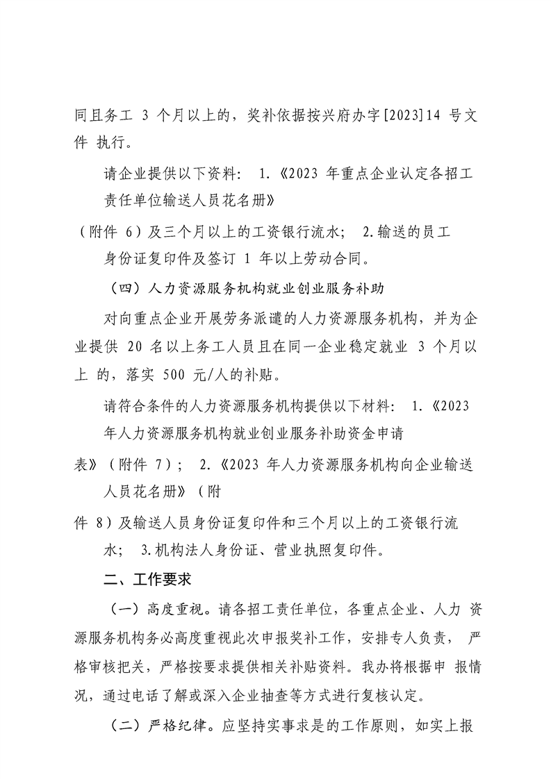 興招工辦字〔2023〕2號關于申報2023年招工補貼及企業吸納高校畢業生一次性就業生活補貼的通知