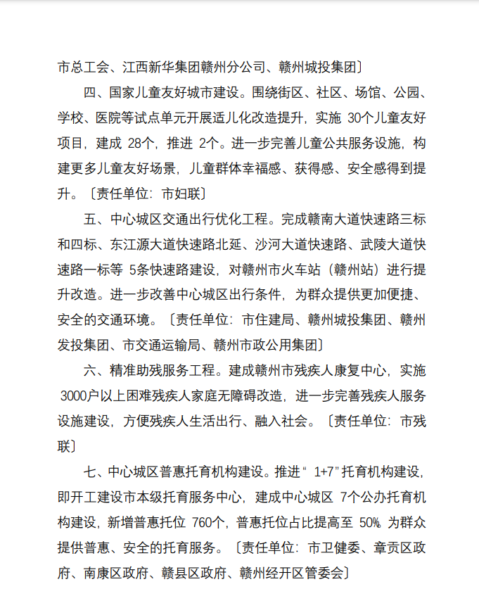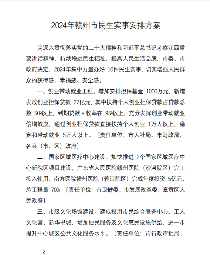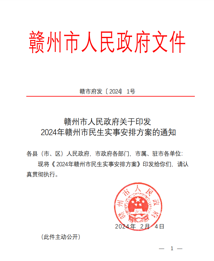 贛州市人民政府關于印發2024年贛州市民生實事安排方案的通知