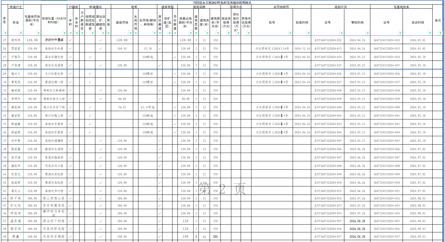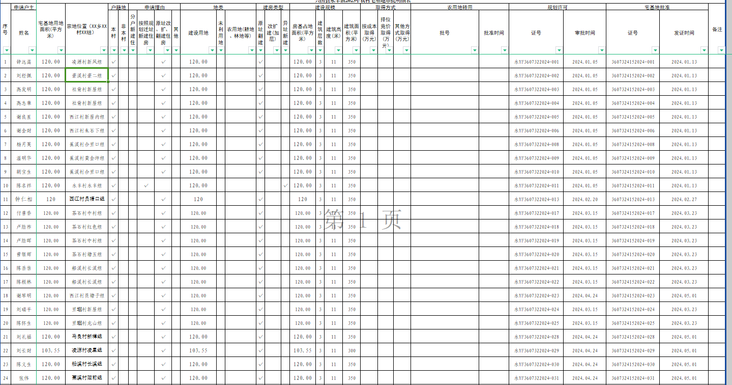 興國縣永豐鎮2024年農村宅基地審批明細表