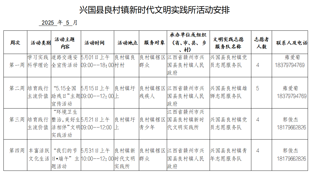 2025年5月份良村鎮(zhèn)新時代文明實(shí)踐所活動公示