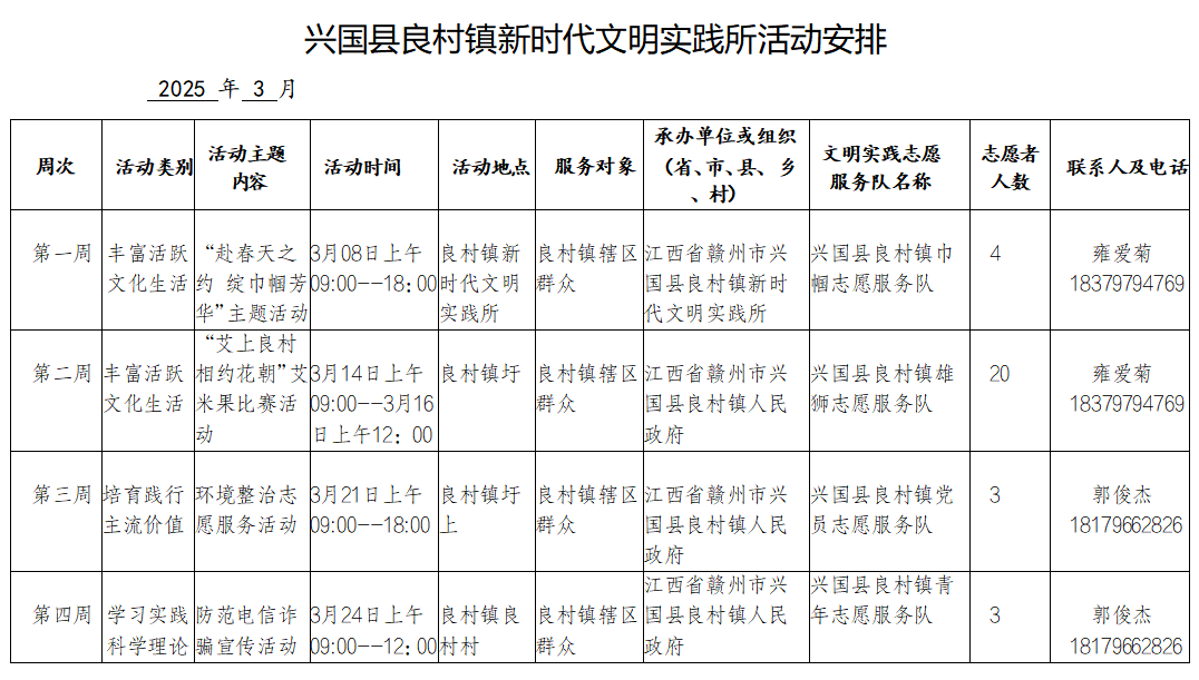 2025年3月份良村鎮新時代文明實踐所活動公示