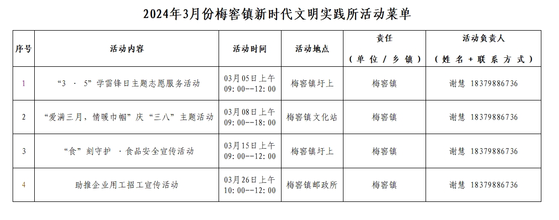 2024年3月份梅窖鎮新時代文明實踐所活動公示
