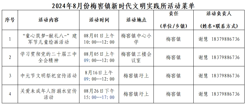 2024年8月份梅窖鎮(zhèn)新時代文明實踐所活動公示