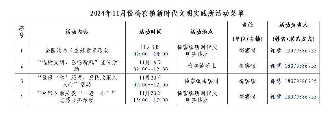 2024年11月份梅窖鎮新時代文明實踐所活動菜單
