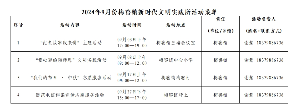 2024年9月份梅窖鎮新時代文明實踐所活動公示