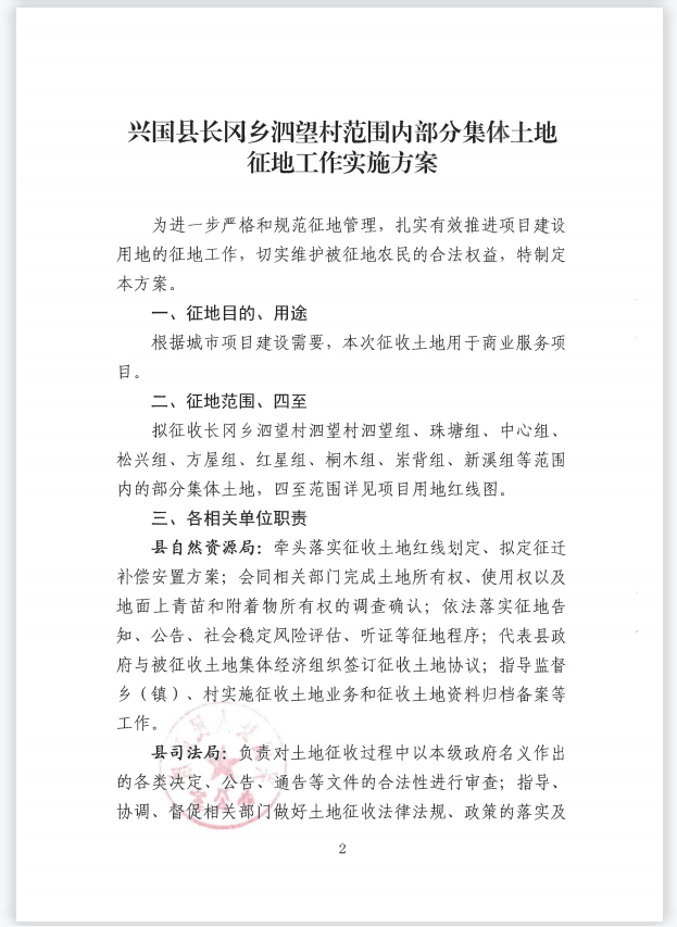 【有效】興國縣長岡鄉泗望村范圍內部分集體土地征收工作實施方案(興府辦字【2022】51號)