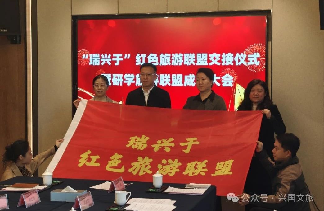 會上,瑞金市向興國縣移交紅色旅游聯盟會旗,明確今年由我縣作為輪值盟主。贛州市文廣旅局聯合瑞金、興國、于都共同發布“瑞興于”研學旅游聯盟合作倡議書,鐘元浩副局長強調三地要通力合作,緊密圍繞市場需求,推動聯盟成員資源共享與互補,加大政策支持力度,豐富旅游產品供給,切實擴大“瑞興于”紅色旅游(研學旅游)聯盟影響力,促進區域經濟協同發展。