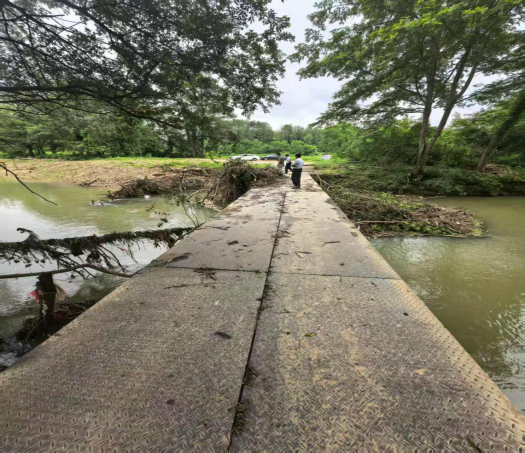 據(jù)了解,牛骨塘橋位于興江鄉(xiāng)坳背村村道CO01360732貴腳坳至牛骨塘道路上。老橋為一座寬2.5米的鋼便橋,荷載等級較低,橋梁凈寬2.3米,兩側(cè)無欄桿,不能滿足當(dāng)前交通量和群眾出行的要求,每當(dāng)漲水從橋面通過,造成道路斷行,對當(dāng)?shù)厝罕姷纳a(chǎn)生活造成很大不便。