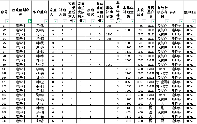 隆坪村2025年9月份農(nóng)村低保名單公示