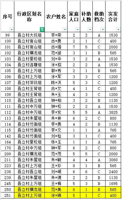 吾立村10月份農村低保匯總名單