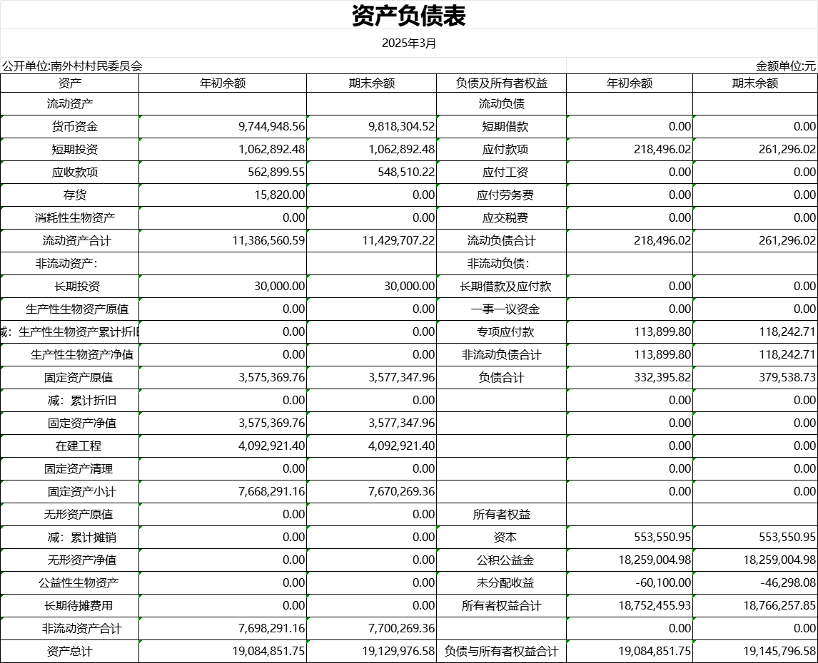 南外村2025年3月資產(chǎn)負(fù)債表公示