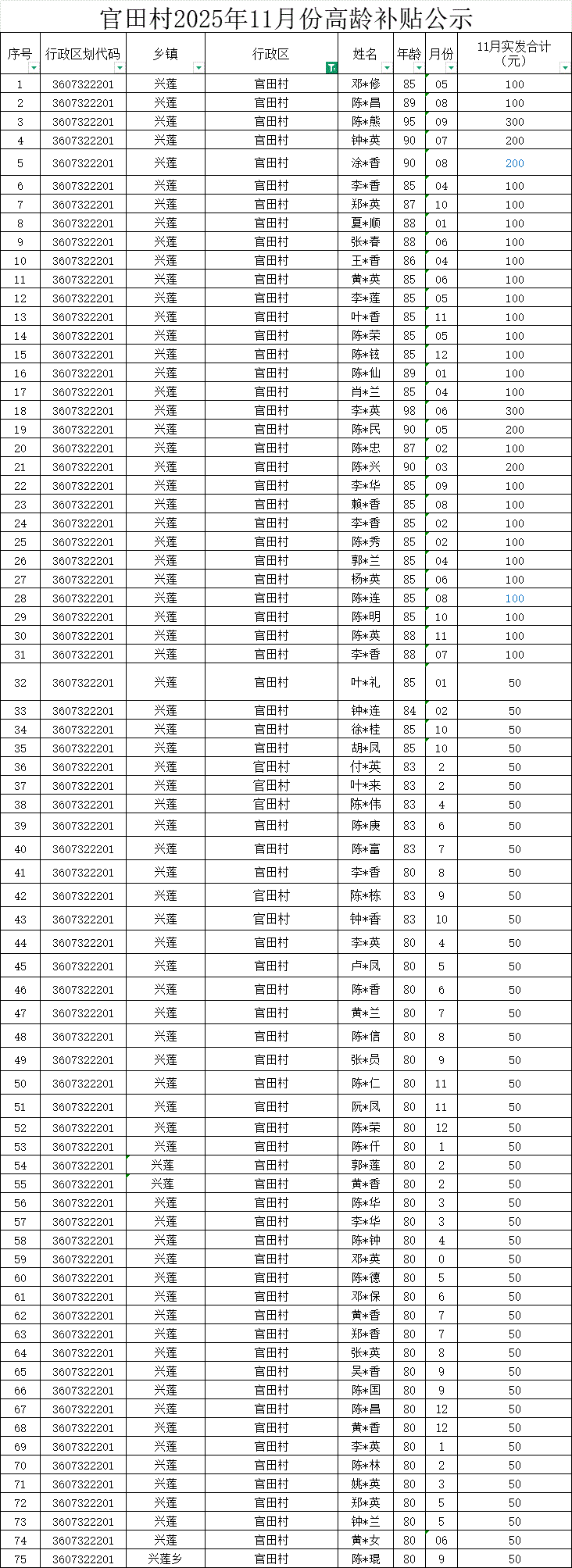 【養(yǎng)老服務(wù)】官田村2025年11月份高齡補貼公示
