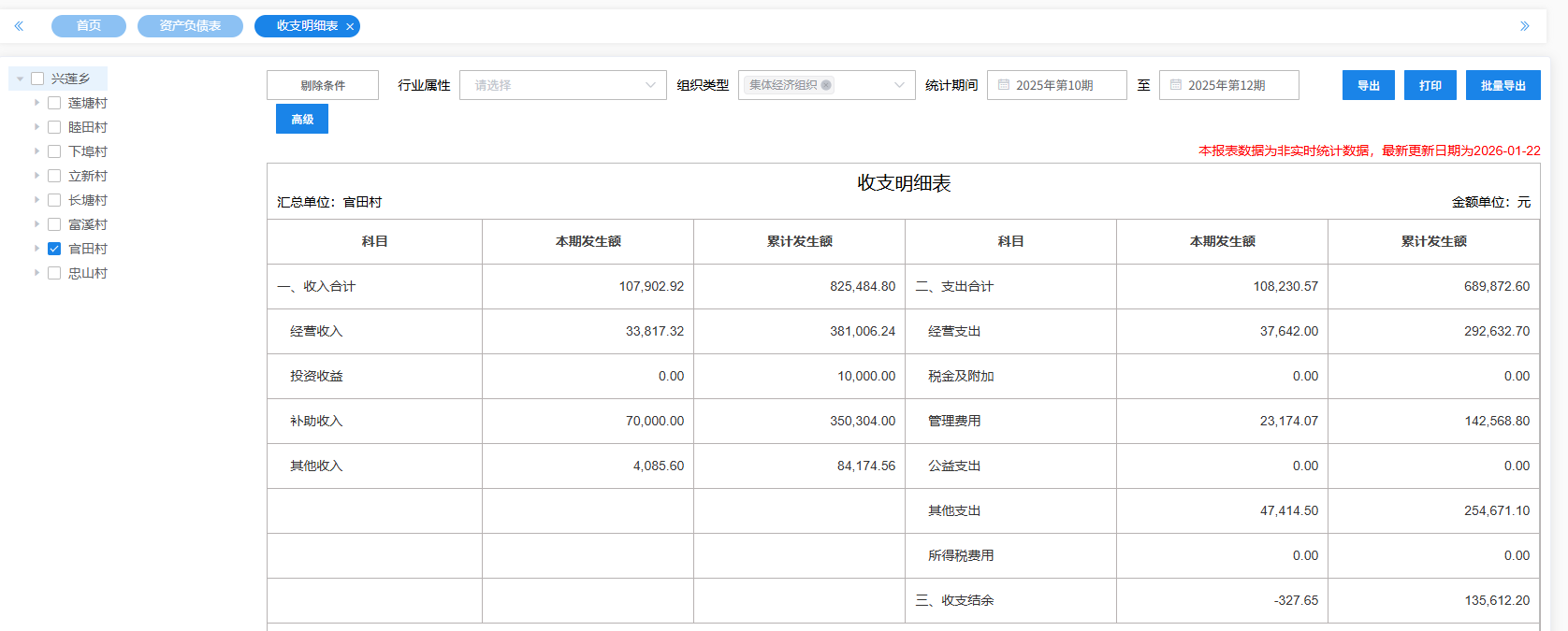 【財務收支】官田村2025年第四季度收支明細表公示