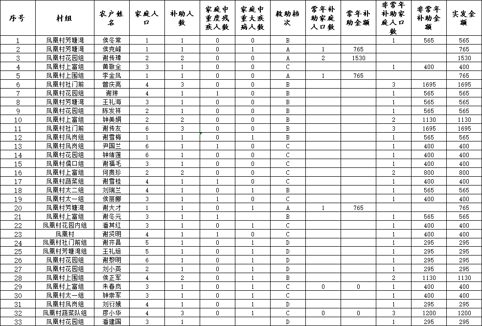 【社會救助】瀲江鎮鳳凰村2025年6月份農村低保名單公示
