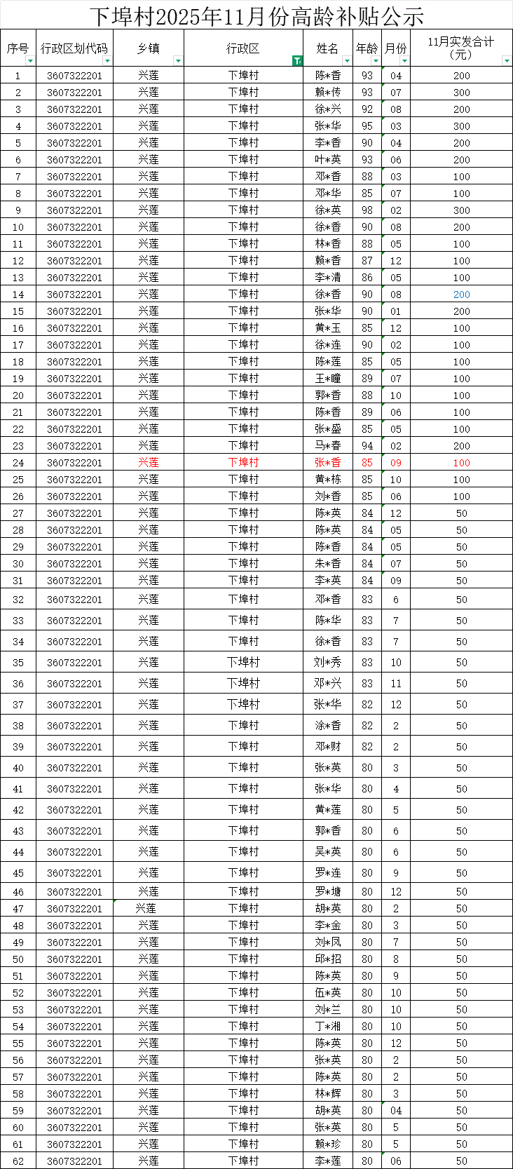 【養(yǎng)老服務(wù)】下埠村2025年11月份高齡補(bǔ)貼公示