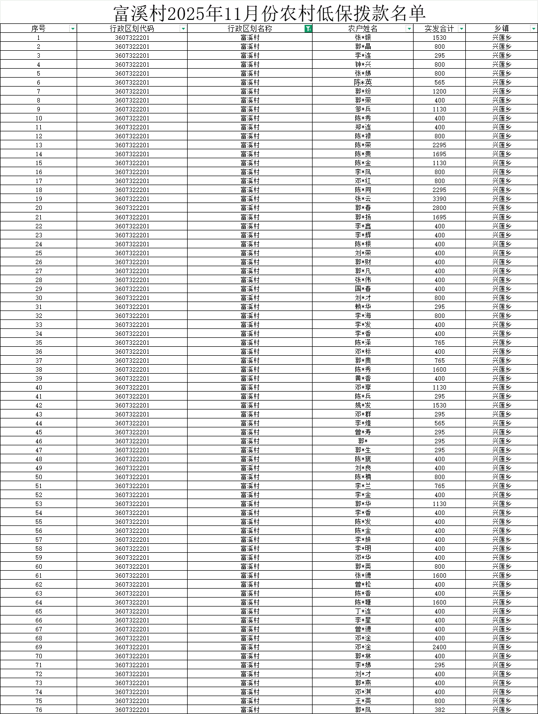 【社會救助】富溪村2025年11月份農村低保公示