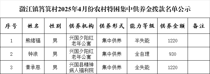 【養老服務】瀲江鎮筲箕村2025年4月份農村特困集中供養金撥款名單